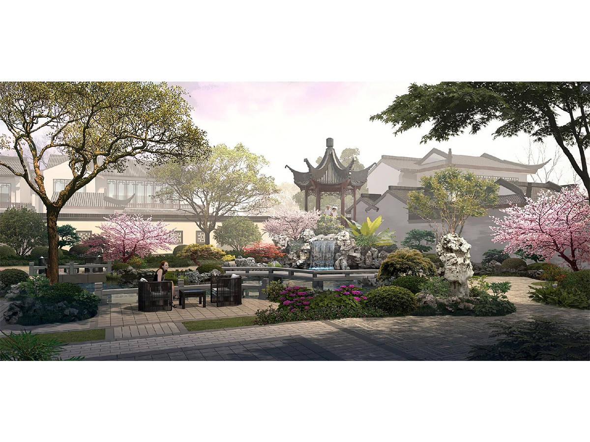 一期北区中式合院别墅,总占地124亩,容积率仅0.4,共规划150户,每户占地近一亩,户型建筑面积150-450㎡,均价约25000元/㎡。