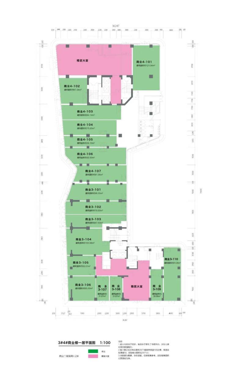 商业一层层高5.35m(可分隔双层使用),商业二层层高4.2m,赋能商家业态多样选择,可发展24h营业、夜消费经济等,可满足培训、教育、休闲等多业态经营需求,投资风险小,经营可塑性强。