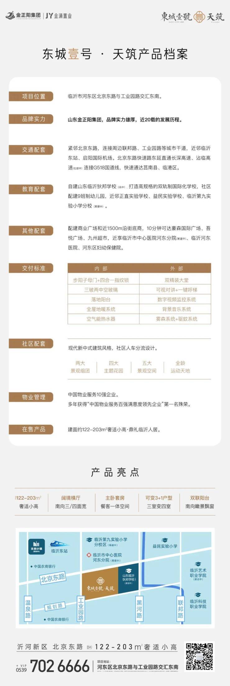东城壹号·天筑,仪式感入口设计,金属感风格外立面,简约大气,利用现代简约设计,营造高级感,塑造归家仪式感。漫步水景广场,蜿蜒回转临池照影,层层递进的多维景观,交织的树阵,随季相变幻的植物,带以丰富的心理体验,满园风景为你守候归家的宁静,穿庭外是绿荫、花海和草地,配备适合老人、儿童、亲子的全龄活动空间,植物错落转承,令自然与匠心默契结合,全龄化社交生活场所,将人与建筑环境和谐融汇,演绎多重生活意趣。户外会客厅设置时尚休闲廊架,提供更多邻里交流、活动的空间,休闲座凳与绿茵花木结合,打造林下会客厅,提供舒适宜人的晨读、晨练休憩空间,同时增强邻里交流,营造和睦社区,一入楼前,宁静舒畅即刻回归内心,打造出造型各异的宅间花园,花木、灯饰、座椅、小品,和谐雅致,让回家成为一种风情万种的归心之旅。