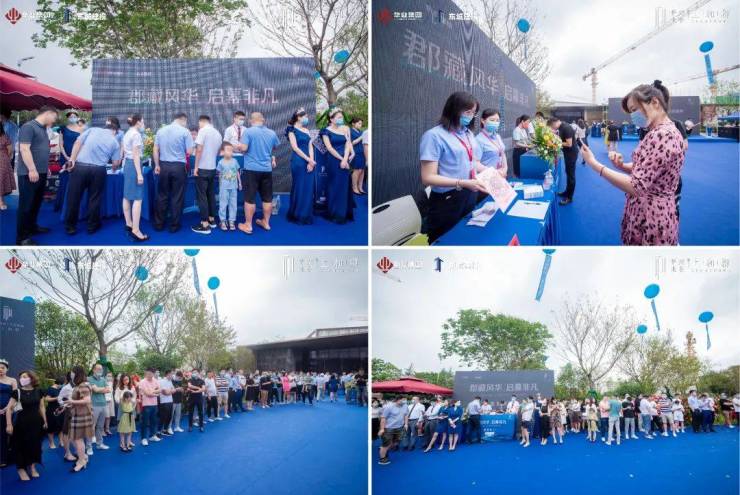 随后,华业集团执行总裁张陆军先生,东城建投集团副总经理、河东区建投置业董事长王学功先生,华业地产公司总经理阮刚先生,龙泰建设集团常务副总经理刘慧女士,山东星火燎原总经理郑源先生 上台一同参与启动仪式,随着“郡藏风华 启幕非凡”的大幕缓缓打开,代表着华业建投·上和郡营销中心荣耀绽放,恭迎八方来鉴。启动仪式后,来宾共同步入营销中心进行参观了解。