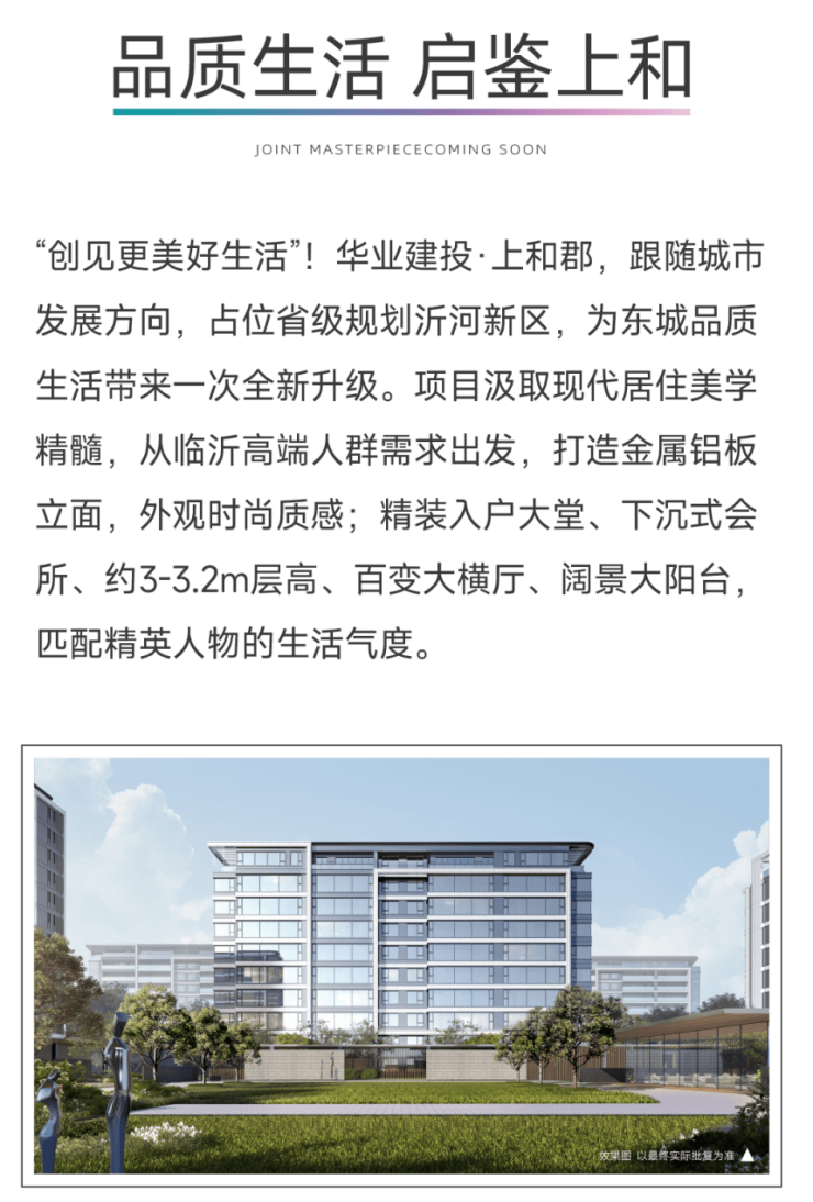 美好,只是开始,精彩,继续启程。上和郡将继续坚守优质匠心的品质,致敬时代更好人居,与临沂共未来。