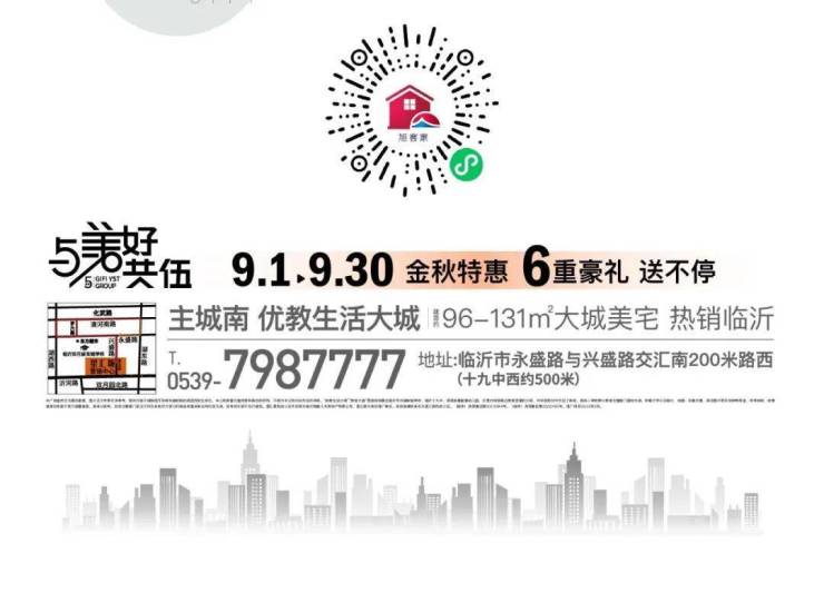 本宣传资料仅为要约邀请,图片及文字等仅供参考,相关内容不排除因开发商未能控制的原因而发生变化,本公司保留对宣传资料修改的权利,不视为本公司对此作出的承诺。“教育大城”“教育大盘”是指项目靠近临沂双月湖实验学校、临沂十九中、项目自建配套幼儿园,仅是对项目周边教育资源的介绍,并非我司对外作出了承诺,具体入学政策以教育主管部门通知为准。所载文字以及相片,地图、印象示意,标注图片等仅供参考用途,所有政府、政策信息均来源于官方披露信息,具体以实物、政府主管部门批注文件及买卖双方签订的商品房屋买卖合同约定为准,如有变化恕不另行通知。星汇城悦府小区开发商为临沂辉盛几木房地产有限公司,星汇城为项目推广案名,政府备案核准名为星汇城悦府小区。(临审)房预售证第20220162号。(临审)房预售证第20220148号。推广时间:2022年9月。