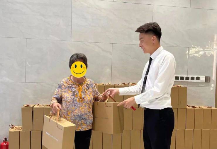 当前来的业主接过精致的节日礼盒,它代表的不仅仅是一份礼物,更是奥达全体对业主家人们沉甸甸的祝福。