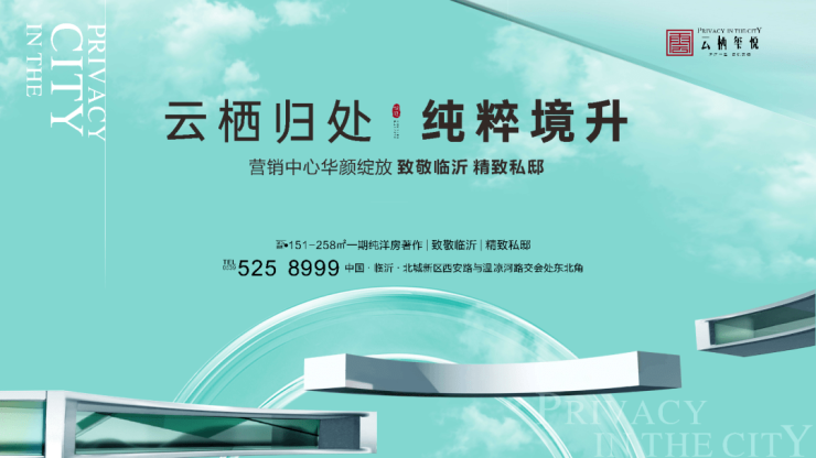 云栖玺悦,立脉北城之心——西安路,帷幄北境繁华,奢享奥体旁繁华境,坐拥西郊实验学校、沂河实验学校、临沂三中全龄三名校,约5万㎡滨河公园/绿化公园/云栖公园三公园在侧,东向约500米一线河景无遮挡,一期纯粹洋房住区,以“两环一轴五园”景观布局,成就城芯生活新范本,建面约151-258㎡精致私邸,9月11日营销中心现已华颜绽放,繁盛之境华章启幕,VIP盛大认筹全城招募中 同步盛启,VIP预约专线:0539-525 8999!营销中心地址:中国·临沂·北城新区太原路与温凉路交会东北处。