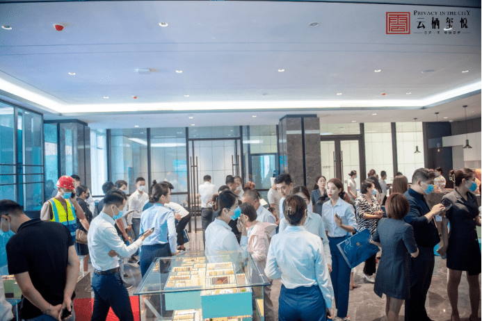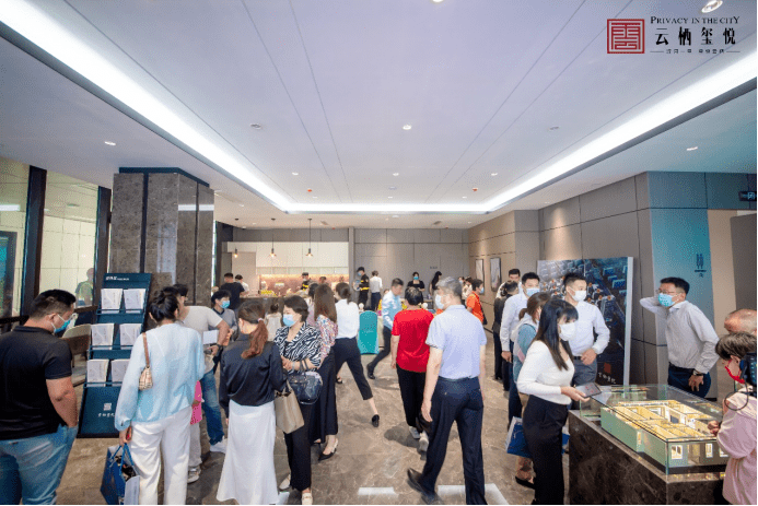 随着舞台大门的帷幕拉开,倾世容颜正式亮相,现场宾客依次有序进入会客厅参观,让整个空间内瞬间人潮汹涌,热闹非凡,作为营销中心引人注目的存在,项目沙盘与户模处更是人潮涌动,在置业顾问十分耐心地为客户讲解项目信息之后,不少客户听后频频点头,对城投的品牌实力和云栖玺悦的产品规划表示肯定,对未来能居住在此表示充满期待 。