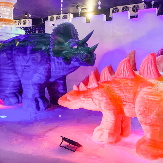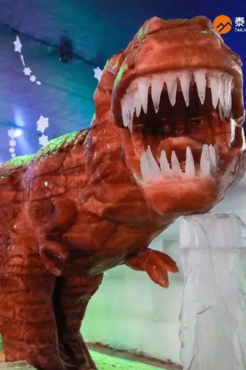 霸王龙还在嘶吼仿佛在宣布着曾经地球霸主的回归由彩冰雕刻而成的侏罗纪世界里你喜欢的那只冰恐龙,还在吗?