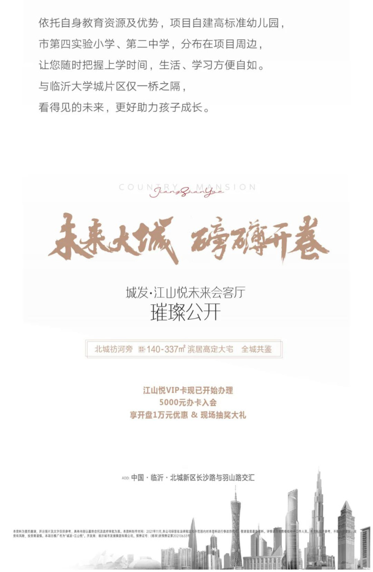 正如这场别开生面的营销中心璀璨绽放一样,城发·江山悦将荟萃一城优渥资源,于北城新区核芯打造尊奢级的都会生活画卷,以敬献指点江山者,未来任何关于未来生活的美好想象,都可在城发·江山悦一一实现。