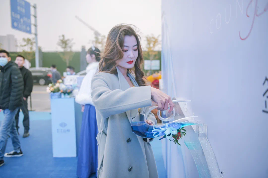 沂河之水千年流淌,澈映蓝天,如同拖曳着一条蓝色的玉带,古称沂水拖蓝,滋养了两岸的生命与文化。活动现场,宾客引沂河之水注水签到,寓意城发·江山悦滨河而居,赋能城市潮新步履。