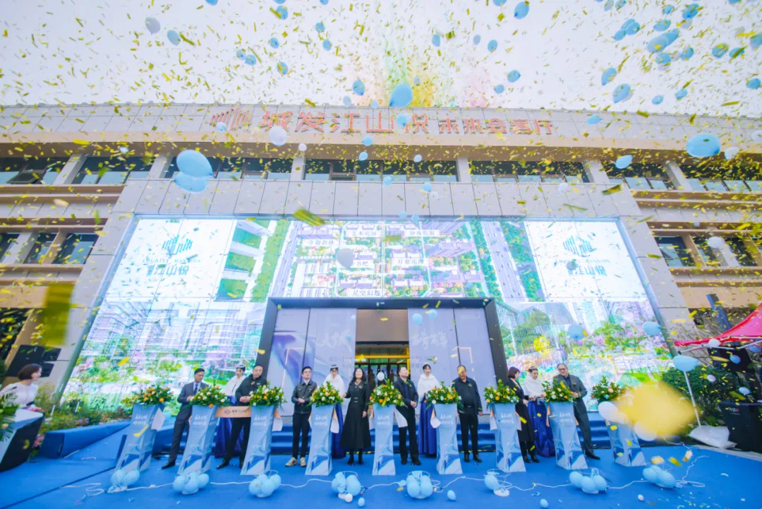 一场动感格调的开场舞 ,为开放盛典的启动拉开序幕,领导们共同剪彩启动气球礼盒,斑斓多彩的气球,承载着希望与喜悦,飞入湛蓝的天空,宣告城发·江山悦未来会客厅璀璨开放。