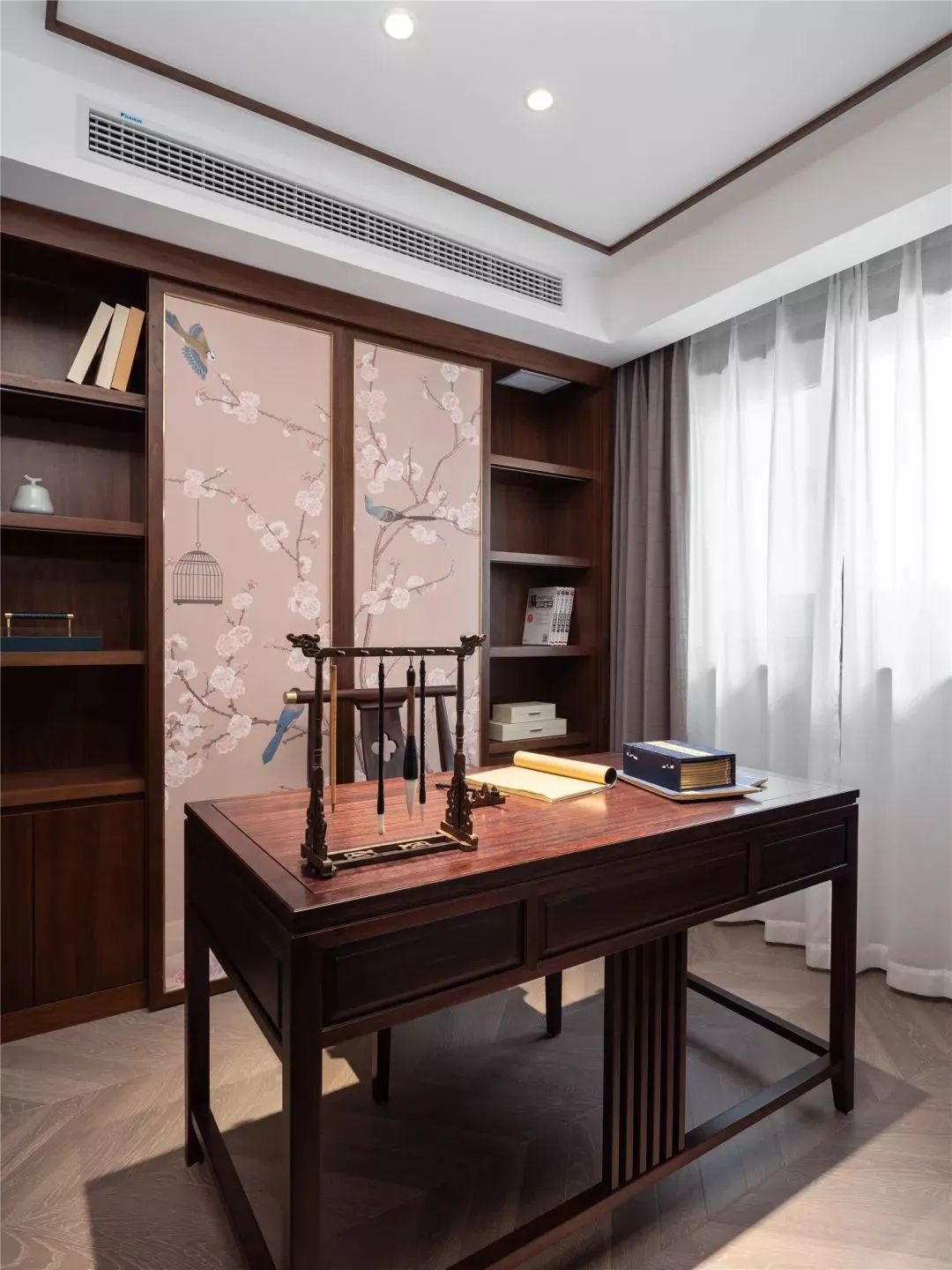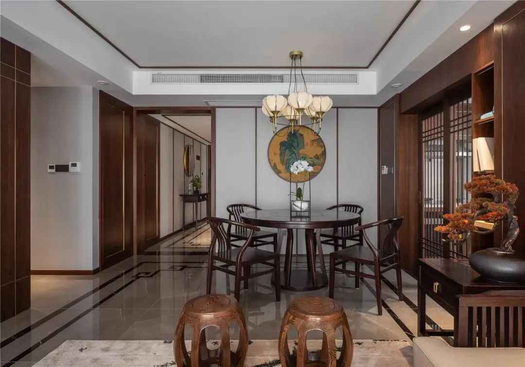 舒适、温馨,有书香亦有烟火气息,新中式装修给人的感觉便是如此,古韵的中式元素,加上中式家具布置,再加一些金属线条装饰,将空间打造的更加古典雅韵,让现代人回归到妙法自然、天人合一的生活。