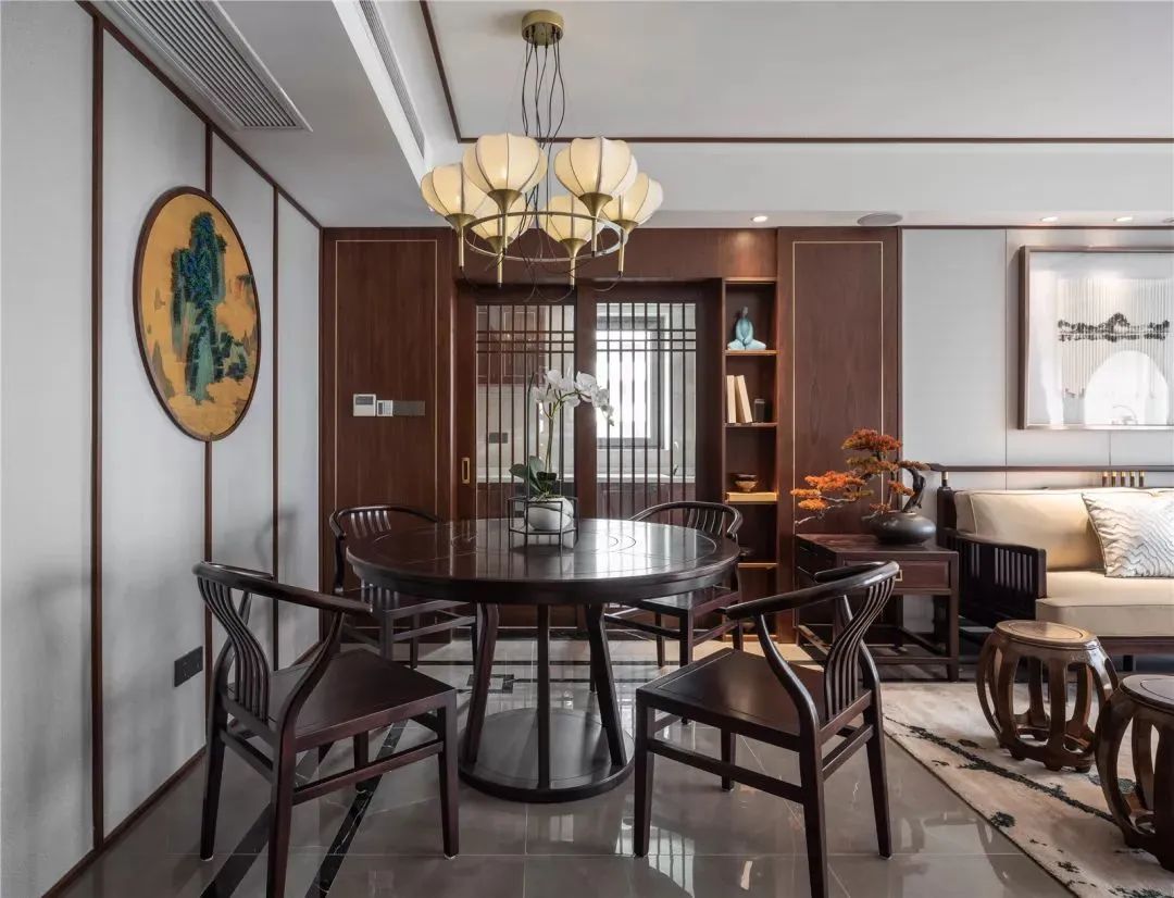 ▲木格玻璃屏风门隔断餐厅与厨房,陶器制品与实木家具的搭配装饰,让室内空间布局时尚简洁大方,木家具与软装东方意蕴十足,营造出具有中式文化的居家环境,张而不显,华而不奢。