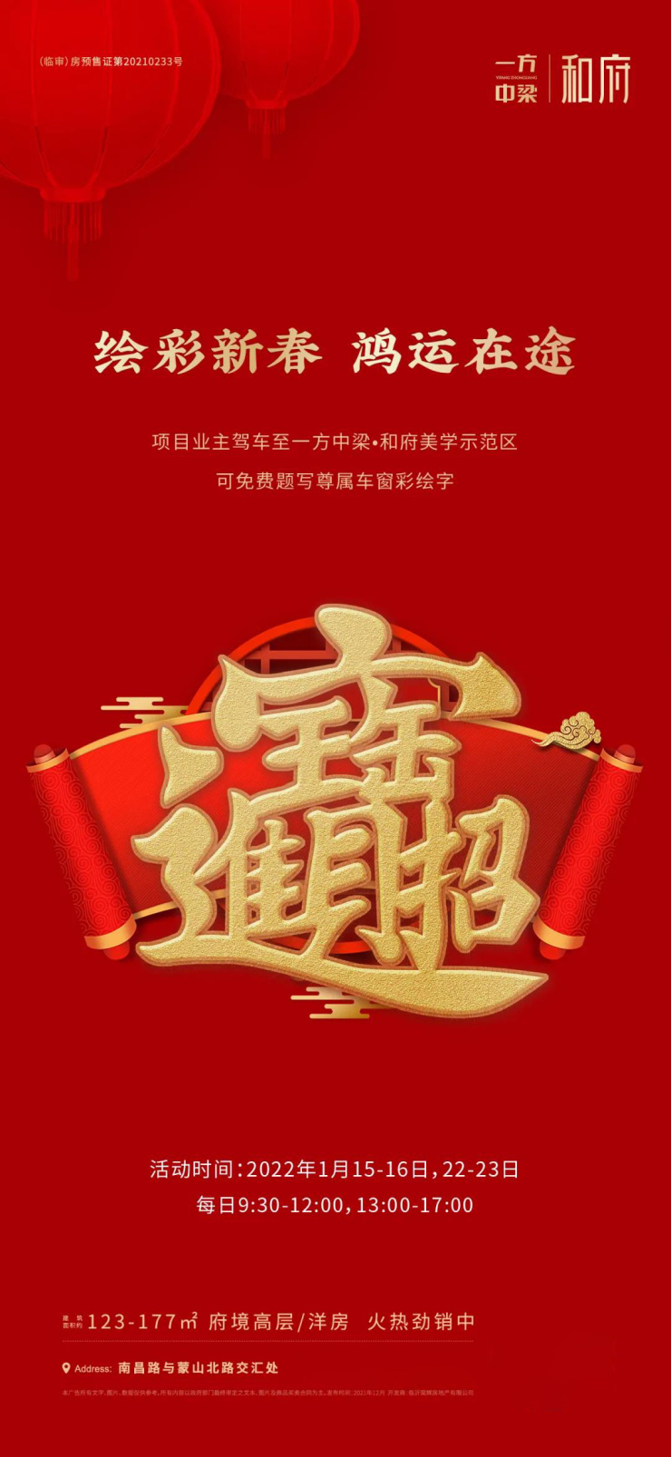 值此新春佳节来临之际,一方中梁·和府邀您,共赴一场仪式感满满的车窗彩绘活动,墨笔挥春,添一份新春年味,指尖艺境,慢享和府好时光,让所有美好,在此绽放!