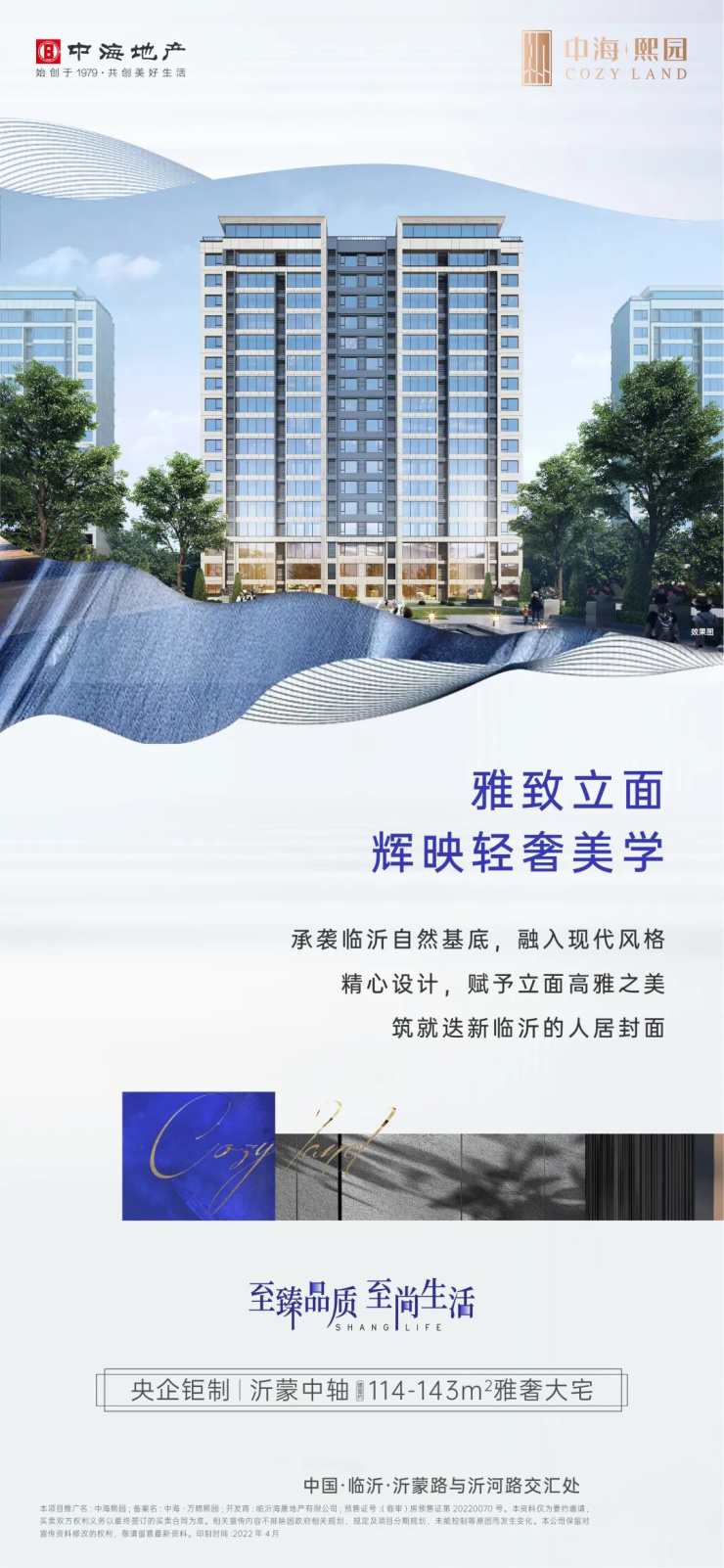 1.本项目推广名为“中海熙园”,备案名为“中海·万锦熙园”。开发公司为:“临沂海晟地产有限公司”。商品房预售证:“(临审)房预售证第20220070号”。2.本资料为要约邀请,不作为要约或承诺。3.相关宣传内容不排除因政府相关规划、规定及出卖人分期规划、未能控制等原因而发生变化。4.出卖人可能会不定期对宣传材料进行修改。5.买卖双方的权利义务以双方签订的《商品房买卖合同》及其补充协议、附件等书面文件为准。6.本资料制作时间为2022年4月27日前的信息,敬请留意较新资料。