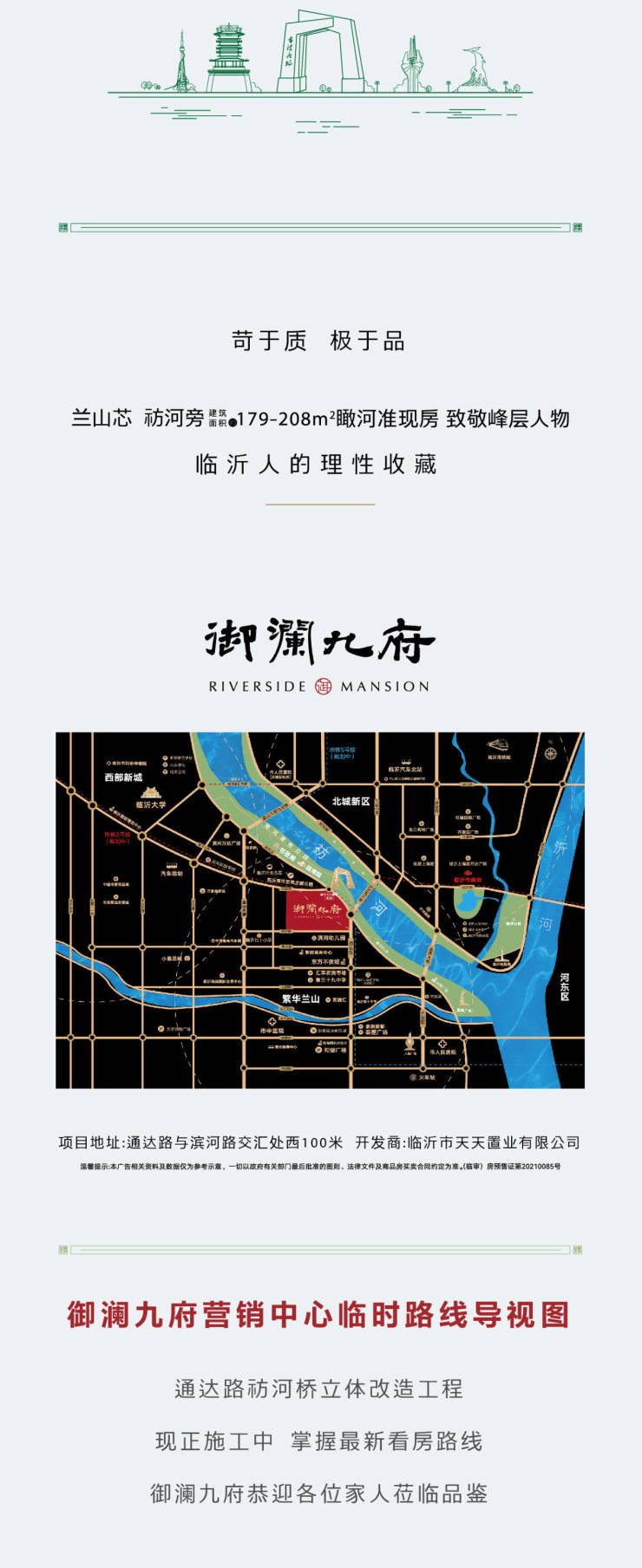 1、本项目开发商:临沂市天天置业有限公司;核准地名:御澜九府;