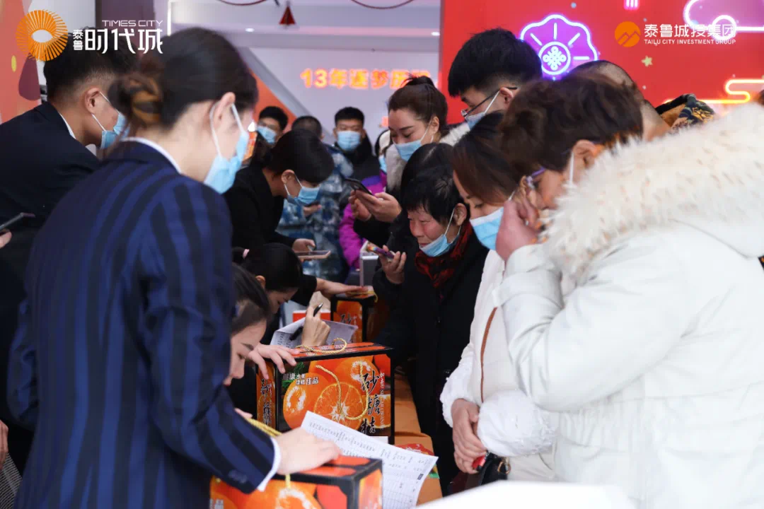 领到柑橘大礼盒的业主们笑逐颜开,这不仅是泰鲁对广大业主深深的祝福,更是泰鲁城投集团“为你优质用心”的真实写照。