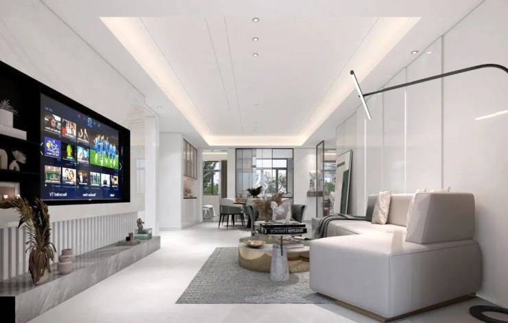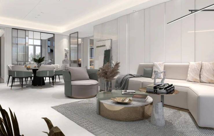 餐、客、阳台 连通的公区设计,避免了视觉上的拥挤,营造出豪迈气派的空间领域,让亲朋好友欢聚一堂,更加惬意自如。