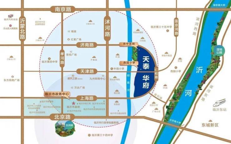 项目左倚柳青河、右靠沂河,自然景观优越;杏园、朴园、三十五中等名校环绕,文脉汇聚;万达、吾悦、银座五分钟内近享繁华,商圈环绕;背靠临沂市中医院北城分院,家门口的优质医疗……出门五分钟内享受工作、入学、生活的一切便利,为峯层人士打造分钟生活圈高端社区。