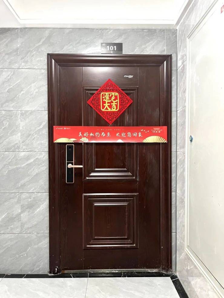 美好不止一点点,每一栋的单元门上、电梯门和入户门都贴上了红色系“欢迎回家”的温馨用语,让业主回家增添了不少仪式感,,剪开封条的一瞬间,家,真实的呈现在眼前,接下来就可以筹备装修,再到乔迁。幸福生活一直在路上。