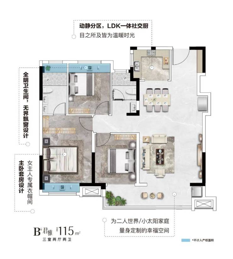 房源·君澜壹品 |约 115㎡爆款宽居透宅,这才是南城三居MVP!