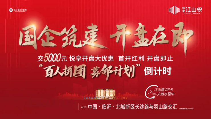 城发·江山悦,国企城发筑建 ,建面约140~337㎡滨居大宅 ,百人拼团,购房优惠,名额有限, 开盘在即,交五千元尽享开盘大优惠 。