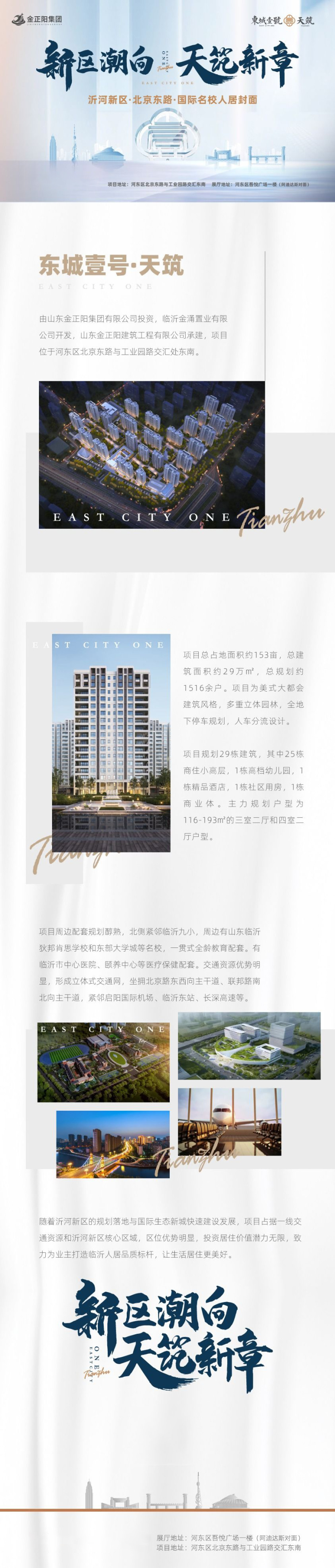 东城壹号·天筑,立序北京东路,借势“沂河新区”政策落地,为再续临沂繁华人居而来,以量身定制的方式于城市肌理融合。匠筑建面约116-190㎡奢适小高,鼎礼临沂人居。