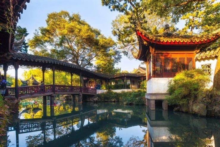 充分考虑建筑形式、廊、亭、水榭,搭配山水草木,苏式园林不仅将文化蕴含其中,而且将美表现得酣畅淋漓。