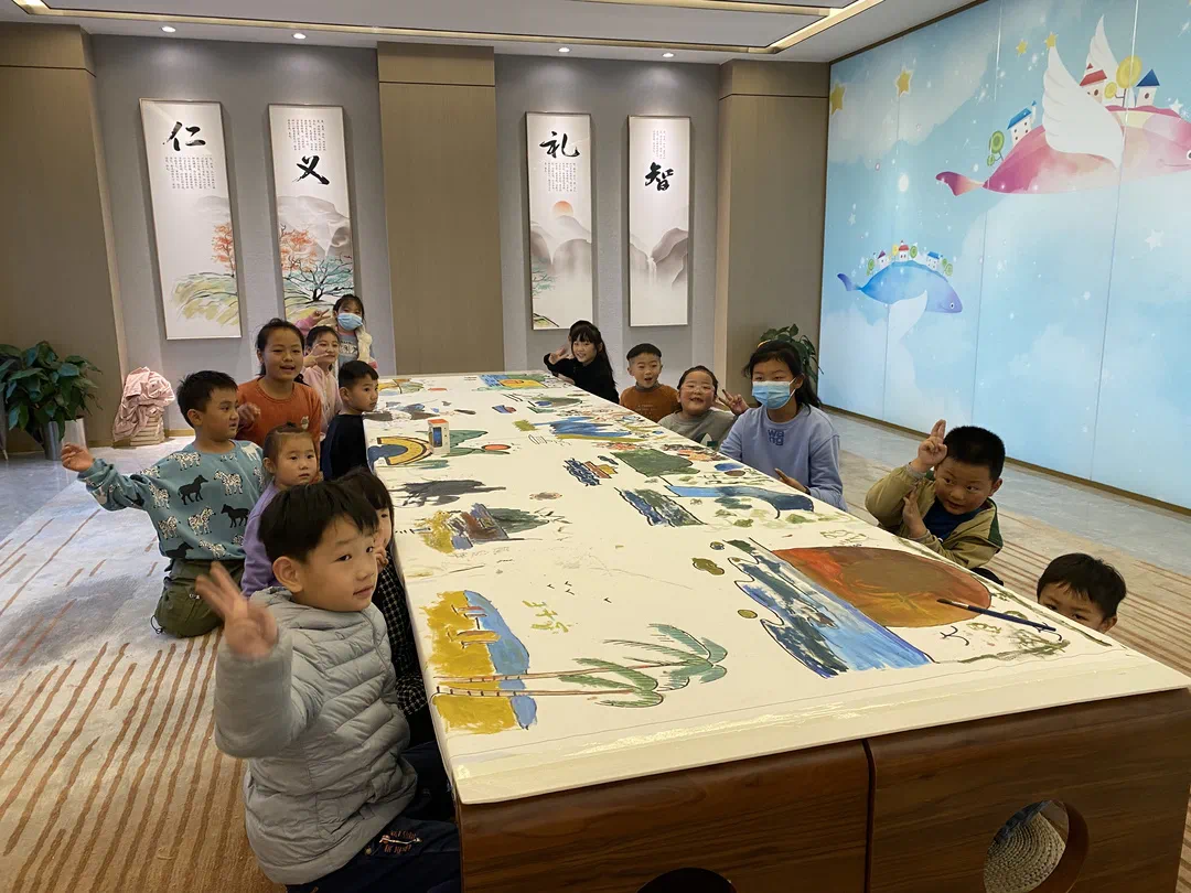 一幅《城市美好江山图》惊艳登场,大小朋友一起共绘城市长卷,化身神笔马良,执笔绘意境。一笔一划,一草一木、一花一石、一景一物,在学童们的笔下鲜活的景象渐入眼帘,雄浑壮阔的意境,气象万千的景色,匀净清丽的设色,引发了全场的轰动。