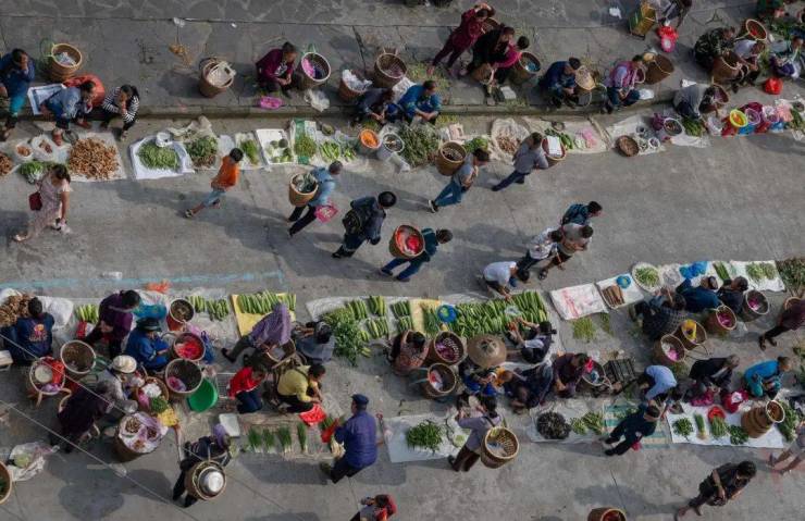 走了20多分钟才到达那个农贸市场。这里算不上一个农贸市场,实际上是一个露天早市,品类也没有那么多。不过,摊贩们还是比较有序地把售卖的东西摆在两侧。
