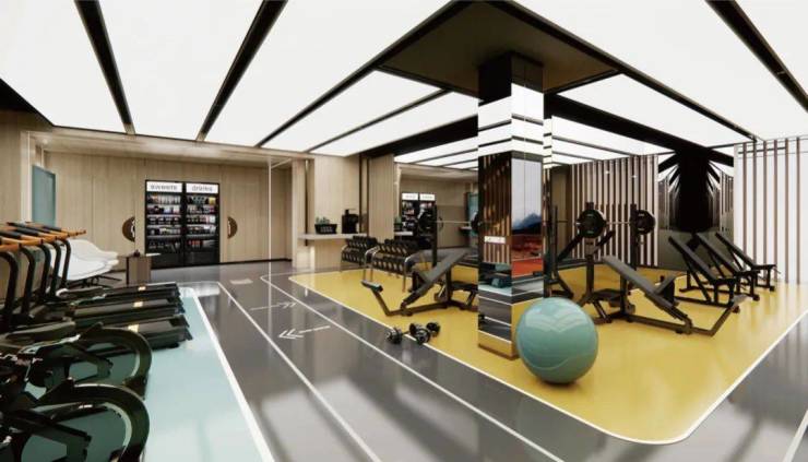 跑步机、椭圆机、杠铃、哑铃等设施一应俱全;单车房、瑜伽房、动感操房、器械区,可以尽情释放;全面的运动健身设施,丰富的运动场馆体验,给业主更私人化的定制体验;即使社区封闭,也能随时换身运动服来跑步。