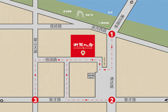 施工期间全封闭该处交通,滨河路东西方向保持畅通,聚才路东西方向保持畅通,南北方向通行车辆和行人可选择合适路线绕行。