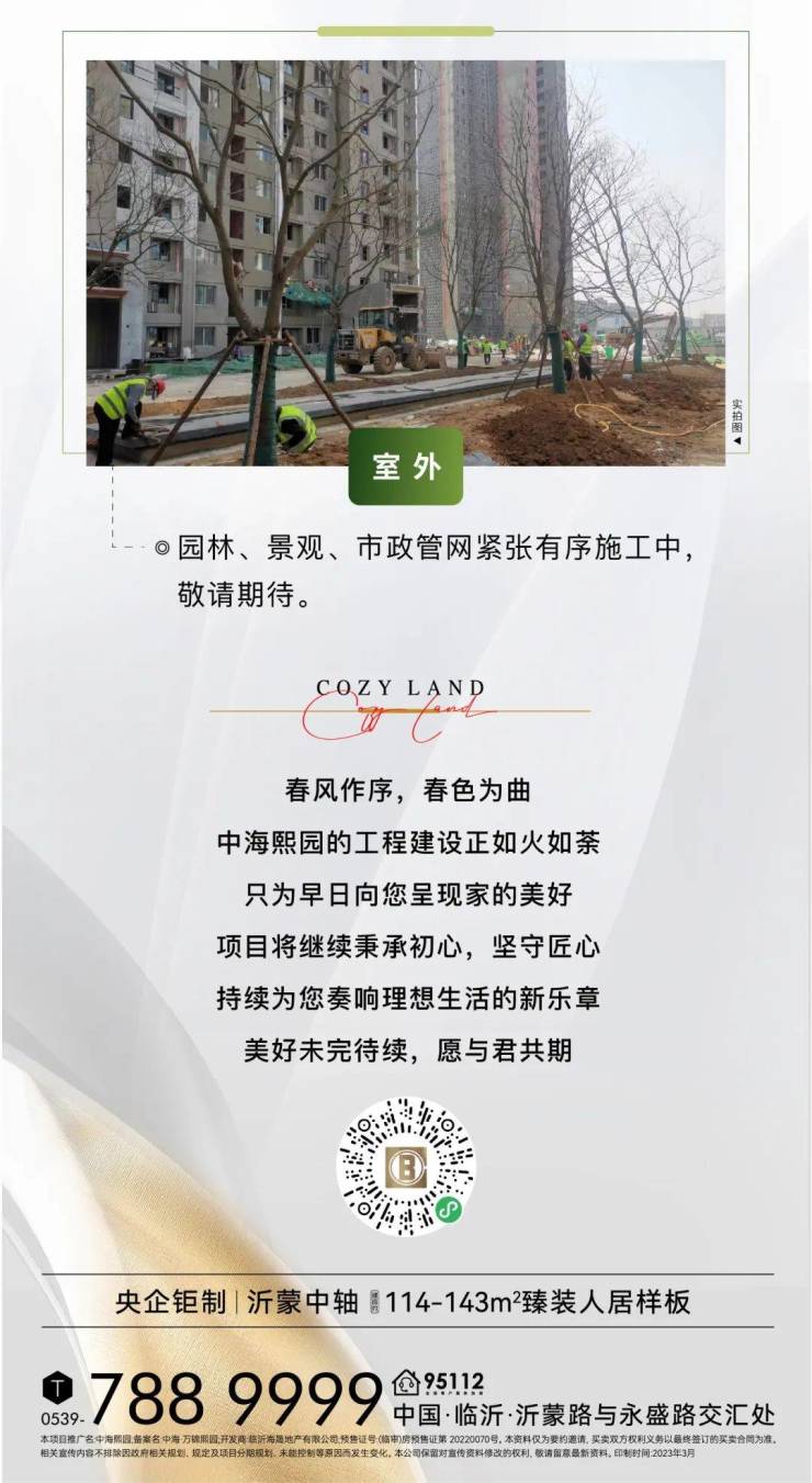 1. 本 项 目 推 广 名 为 “ 中 海 熙 园 ” , 备 案 名 为 “ 中 海 · 万 锦 熙 园 ” 。 开 发 公 司 为 : “ 临 沂 海 晟 地 产 有 限 公 司 ” 。 商 品 房 预 售 证 : “ ( 临 审 ) 房 预 售 证 第 2 0 2 2 0 0 7 0 号 ” 。 2 . 本 资 料 为 要 约 邀 请 , 不 作 为 要 约 或 承 诺 。 3 . 相 关 宣 传 内 容 不 排 除 因 政 府 相 关 规 划 、 规 定 及 出 卖 人 分 期 规 划 、 未 能 控 制 等 原 因 而 发 生 变 化 。 4 . 出 卖 人 可 能 会 不 定 期 对 宣 传 材 料 进 行 修 改 。 5 . 买 卖 双 方 的 权 利 义 务 以 双 方 签 订 的 《 商 品 房 买 卖 合 同 》 及 其 补 充 协 议 、 附 件 等 书 面 文 件 为 准 。 6 . 本 资 料 制 作 时 间 为 2 0 23 年3 月16 日 前 的 信 息 , 敬 请 留 意 最 新 资 料 。 中 海 服 务 监 督 热 线 : 9 5 1 1 2。