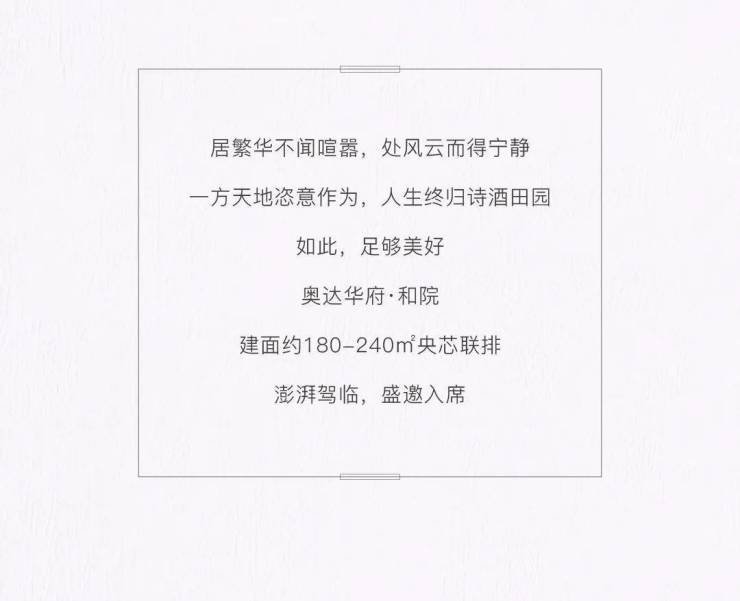 奥达华府·和院,建面约180-240㎡央芯联排,澎湃驾临,盛邀入席。