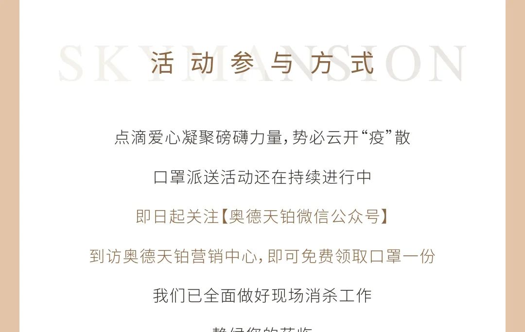 到访奥德天铂营销中心,即可免费领取口罩一份