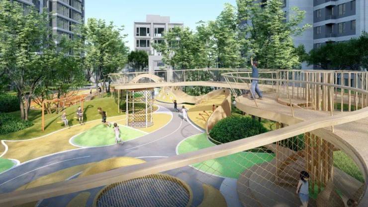 除此之外,社区中还贴心的配建约2000㎡全龄乐园,800米专业健康跑道。未来,社区配套将从社区内延伸至社区外。通过增加多元复合业态,提升街道活力,为业主提供在住区内形成便捷、互动的生活场景。