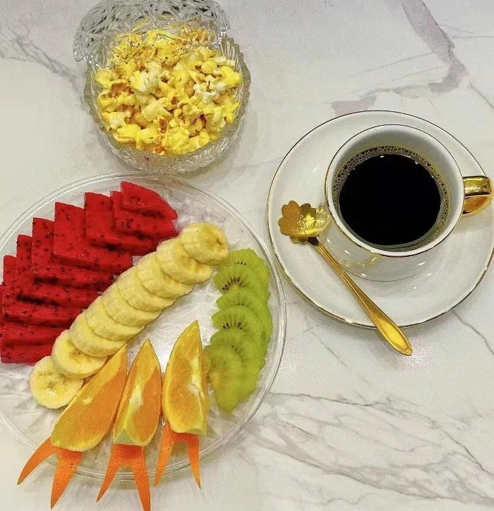 套餐三:群果荟萃:咖啡+爆米花+水果果盘(图片仅供参考,具体以实物为准)