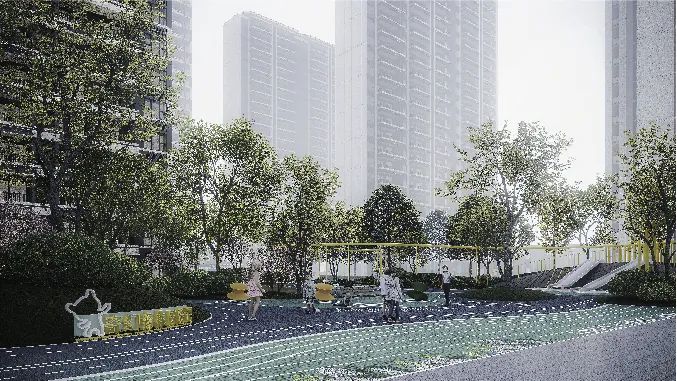通过大面积绿化空间,融入自然与生活结合的理念,让场地既可以作为景观空间,又可以承载活动功能,为社区打造社交、生活、游玩的全龄化场景。