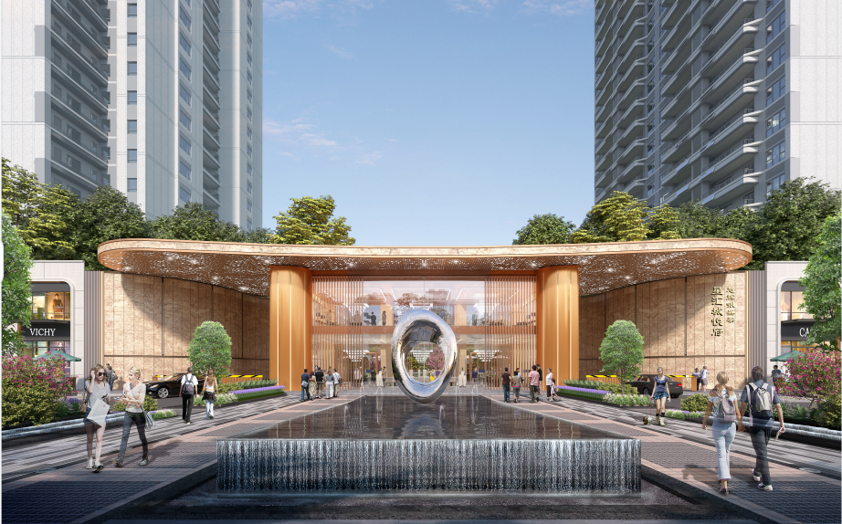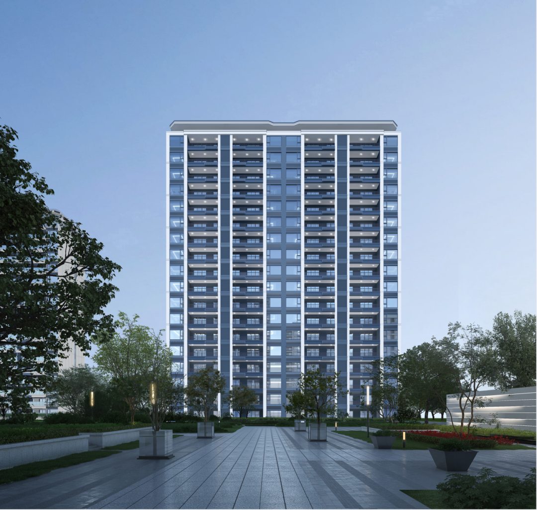 以C大调微笑曲线为灵感源,塑造一个轻盈、灵动的建筑立面,拉近城市与人居的距离,彰显端庄大气且高端生活品位。