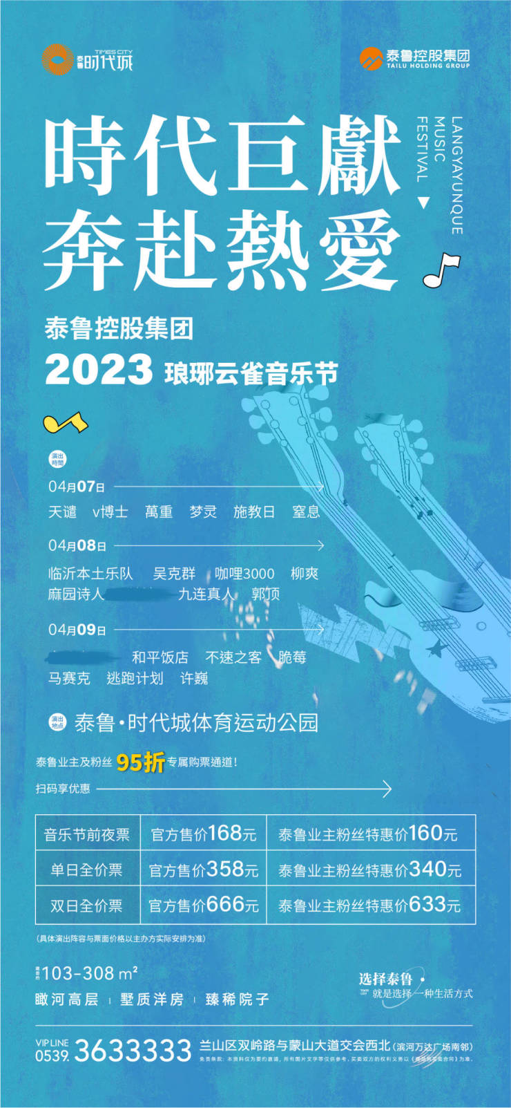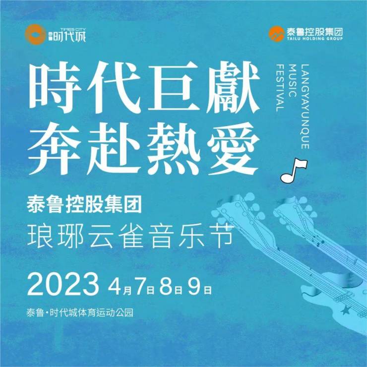 2023 琅琊云雀音乐节,时代巨献 奔赴热爱,泰鲁控股集团·2023临沂琅琊云雀音乐节,4月7日—4月9日,泰鲁·时代城体育运动公园,大咖云集 炫酷舞台 沉浸视听,高能嗨唱 音浪狂欢 等你爆燃。