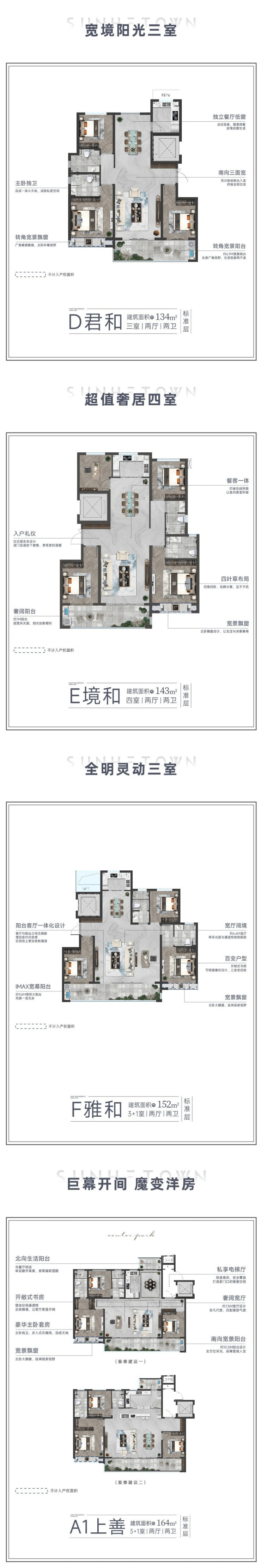 此次首开的户型,是建筑面积约134—164㎡舒居小高/奢境洋房,全明三室四室,空间开阔大气,格局通透方正,更有臻稀的“3+1”户型诚挚献映,拓展居住空间,可将三室变四室。