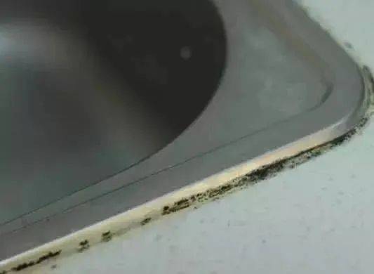 普通的挡水条用玻璃胶拼接在台面上,底部有一条明显的玻璃胶走线。台面上经常有水,玻璃胶长时间接触水容易开裂。水汽和油污顺着裂缝进入瓷砖或橱柜,一样会导致内部发霉发黑。