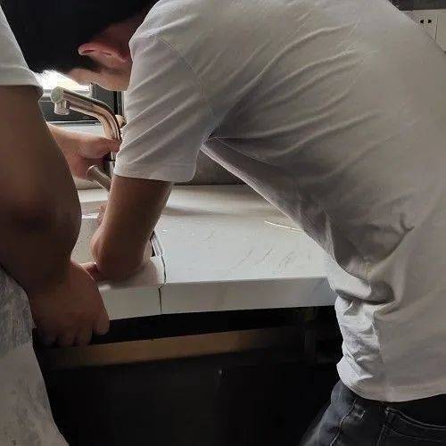 台中盆边沿看起来是和台面齐平了,可中间的那条缝没有消失,依然有卫生死角。并且,台中盆相当考验安装师傅的水平,一旦没装好,缝隙会非常大。