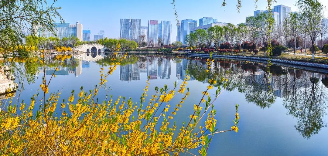 春日的祊河波光粼粼,书法广场区域开阔,“儿童散学归来早,忙趁东风放纸鸢。”伴着河面上和暖的风,和家人朋友享受春日的倾城时光。