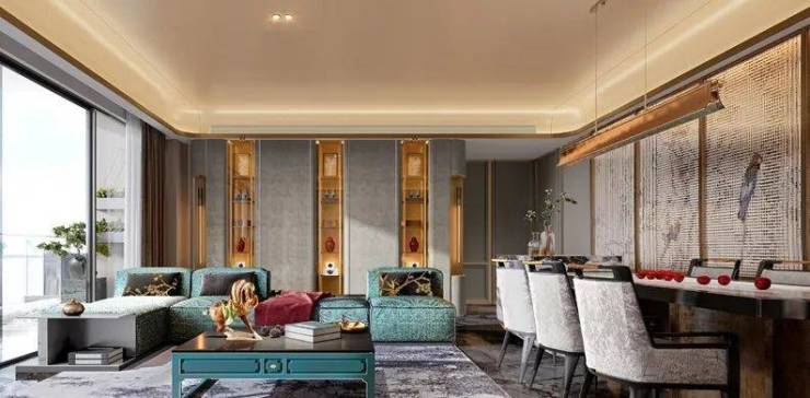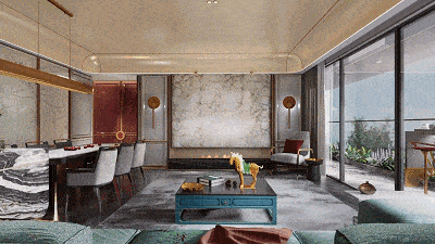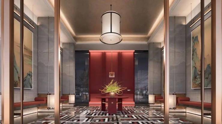 旭辉铂森的室内装修风格,提取东方雅韵的古典元素——绛红、天青、黛蓝、瓦灰、玳瑁等,定制富有个性化、尊贵感的东方美学居所。