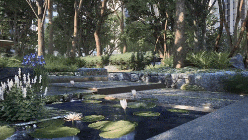 旭辉铂森以自然回归为主线,在景观园林的设计上,更是别具匠心。“5+X”的空间模块设计,把植物打造成社区里的“主角”,利用近中远的生态景观,打造通透而富有生机的社区森林。贯穿旭辉每一代产品的全龄主题空间,也做了全新升级,将注意力从大型主题性设施转变为对自然的探索,取材用料源于天然、归于自然。