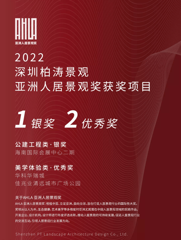 喜讯 | 华瑞城荣获AHLA亚洲人居景观奖美学体验类·优秀奖