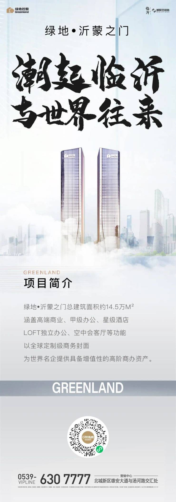 每一座国际城市,都有一个链接全国的枢纽板块。临沂高铁片区与时代同频,依托省级新区--沂河新区,加速发展进程。热土厚壤之上,绿地以城市地标缔造者和全球商办运营专家的责任担当,礼献临沂,以一座沂蒙之门,打造商务主场,定鼎城市未来!