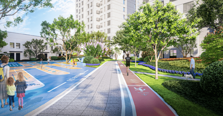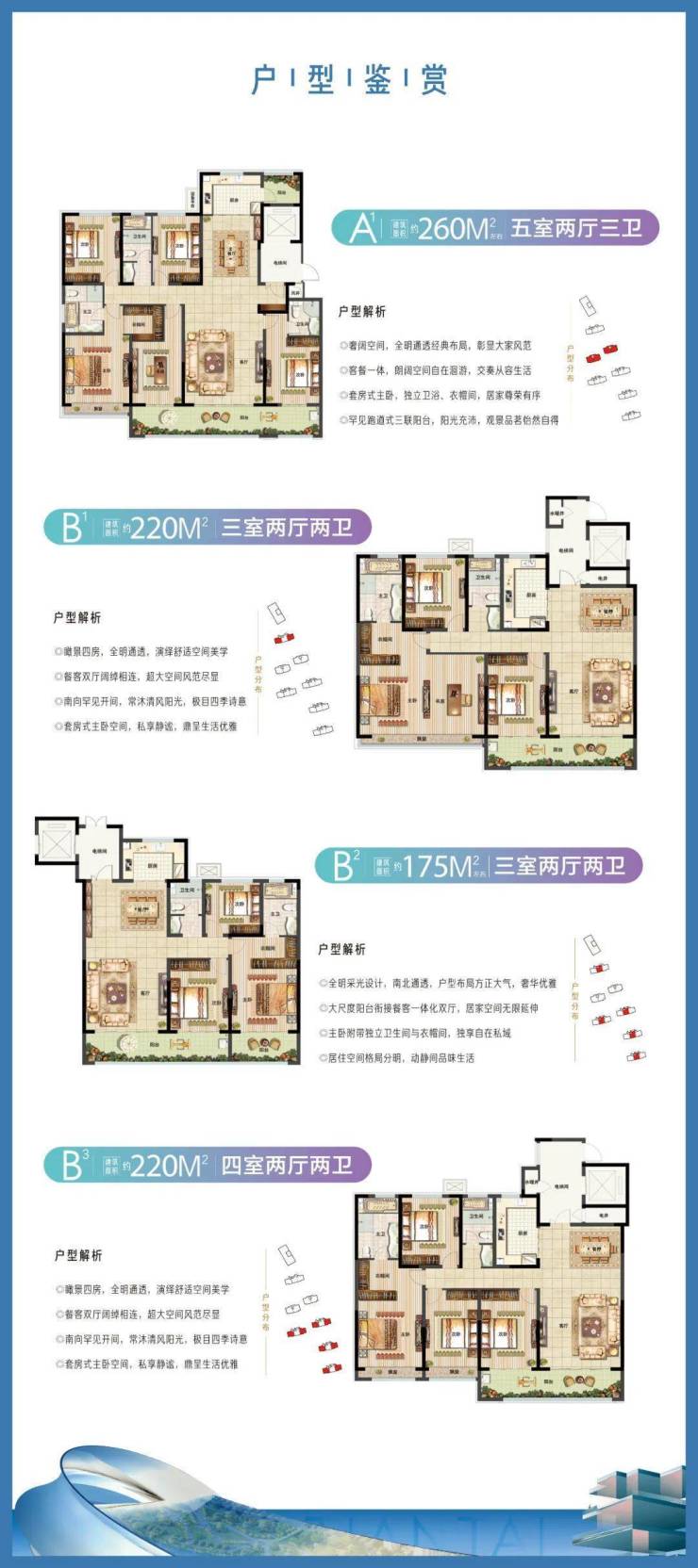 项目由七栋河景住宅楼、一栋社区养老式公寓楼、一所杏园小学西校区组成,设计建面约175-260㎡的墅质大平层,3.1米层高加大进深阳台,重塑生活尺度。
