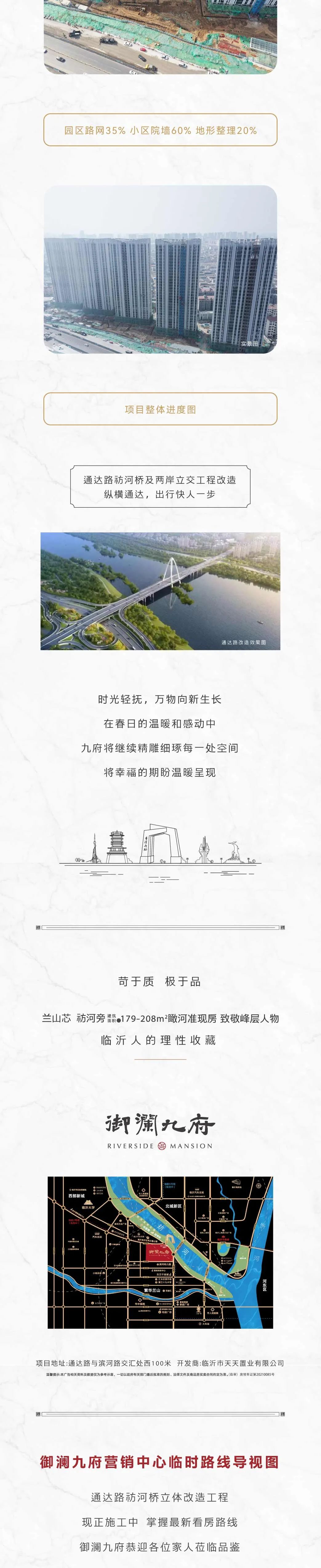 1、本项目开发商:临沂市天天置业有限公司;核准地名:御澜九府;2、本宣传资料为要约邀请,不作为要约或承诺;买卖双方的权利义务以双方签订的《商品房买卖合同》及其补充协议、附件等书面文件为准;3、本宣传资料内提到的商品房面积均为建筑面积,特别说明的除外;本宣传资料所涉及的户型仅供示意参考,所标尺寸面积、室内装修设计方案仅供参考,非实际交楼衡量之基准。相同户型因楼栋、单元或楼层不同,局部结构、面积、尺寸、管线布置等可能存在差异,具体以《商品房买卖合同》为准;4、交通配套信息、市政配套信息来源于官方网站数据,仅供参考。交通规划设置、市政配套设置不排除因政府规划、政策规定及出卖人未能控制的原因而发生变化,本资料旨在提供相关信息、不代表出卖人对此做出要约或承诺;5、部分素材来源于网络,其著作权归原作者所有;如果原作者表明其身份要求本公司停止使用该素材的,请及时与本司联系;6、相关宣传内容不排除因政府相关规划、规定及出卖人分期规划、未能控制的原因而发生变化;本公司保留对宣传资料修改的权利,敬请留意较新资料。