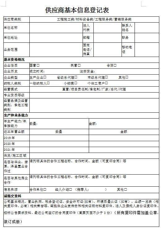 5、认真填写《供应商基本信息登记表》(电子版盖章)
