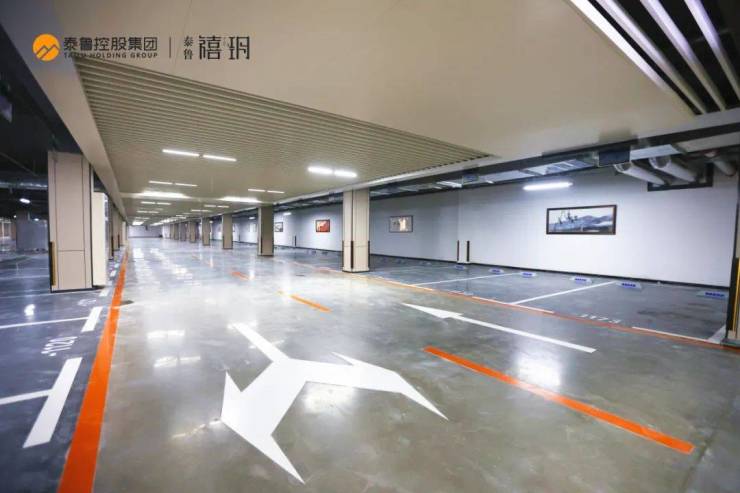 地下车库地面采用彩色金刚砂地坪,高强度耐磨抗压,防滑美观。
